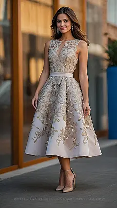 This dress is screaming “dance floor domination!” Seriously, with the delicate lace and twirly skirt, you could totally pull off some impressive moves while still looking like you belong at a fancy tea party. Just picture yourself, gliding across the room, leaving a trail of compliments in your wake. Plus, the knee-length cut means you won’t accidentally trip on it when you bust out your signature dance move!