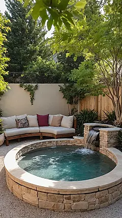 And what’s better than a fancy outdoor couch? Only a private mini-spa right next to it, complete with a bubbling hot tub and a waterfall that looks like it came straight out of a relaxation commercial! Think about it: instant cool-down after summer heat, or a warm, bubbly escape when you need to *really* zone out. It’s the perfect place to spill the tea with your besties (metaphorically, of course, no actual tea in the tub!), or just pretend you’re on a tropical island instead of, well, still in your backyard. Just try not to hog all the bubbles!