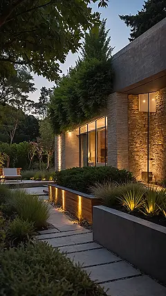 Stepping into this garden feels less like walking home and more like entering a secret level in a really awesome adventure game. With those perfectly glowing lights showing off every plant and the pathway, you just know this place has a ‘no bad vibes allowed’ policy written somewhere in fancy script. It’s so put-together, I bet even the garden gnomes here have their own tiny, perfectly manicured lawns. This isn’t just a garden; it’s practically a red-carpet event for flora, where every leaf is ready for its close-up, especially at twilight when everything just pops like it’s auditioning for a spot in a fancy nature documentary.