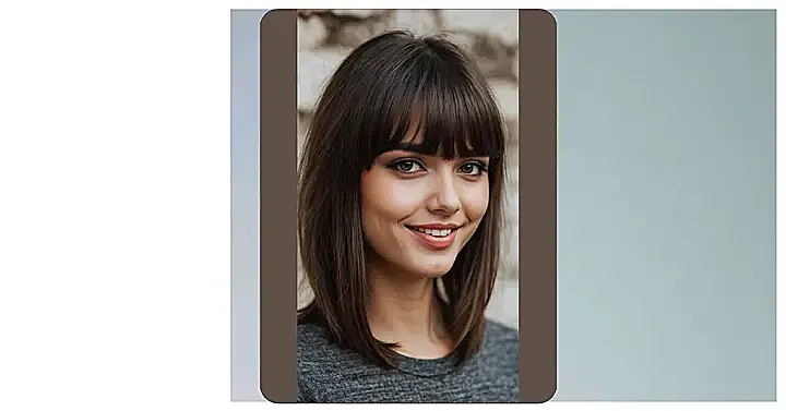 Our model here is absolutely owning her bangs haircut, making it look totally effortless and chic! Those perfectly placed strands frame her face beautifully, highlighting her gorgeous eyes and adding a cool, fresh vibe to her whole look. It’s like her forehead decided to throw a stylish party, and everyone (especially her eyes) got an invite to look fabulous. Bangs are basically your hair’s way of saying, “Hey world, I’m here and I’m feeling good,” even on those mornings when you might feel more like a tangled mess.