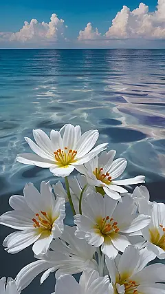 These aren’t just any ordinary flowers; they’re like little stars of the sea, all bright and cheerful. They’re so perfect they almost look like they were drawn, and the way they contrast with the calm ocean makes for the ultimate relaxing vibe. Seriously, imagine scrolling through your phone and being instantly transported to this peaceful paradise! This wallpaper is a total mood booster – it’s like a mini-vacation every time you unlock your phone. Get ready to ditch those boring old wallpapers and embrace the flower power!