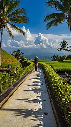 Seriously, Bali is like a giant, green postcard waiting to be photographed. This picture proves it! You can see this guy, looking all adventurous, heading towards some seriously cool architecture. Taking pictures of your travels is the best way to share your adventures with everyone. Plus, you can totally brag about it on Instagram! #BaliAdventures #TravelGoals