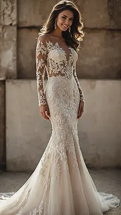 This stunning wedding dress is basically a masterclass in elegance, featuring lace that’s so intricate it probably took a team of tiny fashion gnomes to stitch! See how it perfectly hugs every curve before flaring out into that beautiful train? That super-sculpted look is often thanks to a secret weapon hiding underneath all that gorgeous fabric: a corset. It’s like wearing an invisible superhero suit that gives you that fabulous, cinched-in waist, making sure you look absolutely snatched and ready to float down the aisle like you’re on a cloud.