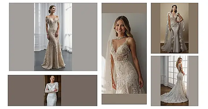 Also, check out the intricate details! Someone spent a lot of time making sure every little bead and piece of lace is in the perfect spot. It’s almost too pretty to get married in – almost! It’s the kind of dress that will make everyone say “Wow!” and maybe even shed a happy tear or two. So basically, get ready to be the main character of your own real-life rom-com!