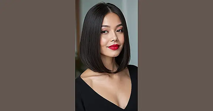 This picture is all about rocking a bob! See that sleek, straight bob? It’s super chic and totally modern. Imagine yourself with this hairstyle – less time spent fussing with your hair in the morning, more time for, like, actually having fun. Plus, bobs are super versatile; you can dress them up or down, depending on your mood. Think bold red lipstick one day, and a messy bun the next – it’s all about the bob!
