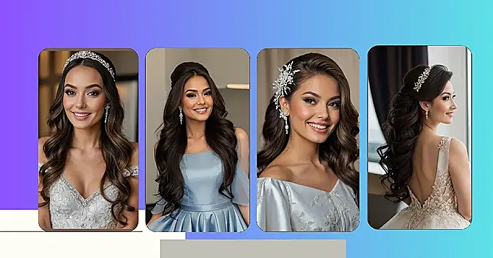 We start our journey down the aisle with half-up hairstyles that perfectly symbolize the essence of bridal charm. Think about it: half-up styles can go from simple elegance to dreamy romantic vibes while keeping those gorgeous locks flowing. What’s more, this versatile style works like a charm with a veil—adding a touch of whimsy to your overall look! No contract necessary; just a little creativity!