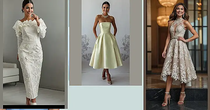 So, you’re about to walk down the aisle, but traditional long gowns aren’t your jam? Check out this awesome bridal outfit! It’s like a princess dress decided to take a chill pill and go for a fun, flirty vibe instead. The lace details are super pretty, and the shorter length means you can actually dance at your reception without tripping! Plus, no one will mistake you for a giant marshmallow. Win-win!