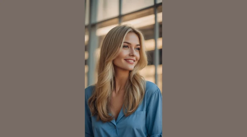 Looking at this picture, you might think you’ve stumbled into a fancy bakery, not just a beautiful photo! This lovely lady’s hair is the very definition of “creamy blonde,” looking so smooth and dreamy you’d almost expect it to smell like a vanilla latte or a freshly baked croissant. Those long, flowing waves catch the light perfectly, making her whole look absolutely radiant, like she just stepped out of a shampoo commercial where everyone is having way too much fun. It’s definitely the kind of blonde that makes you want to run your fingers through it – maybe even take a bite (just kidding, mostly!).