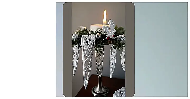 This Christmas candle holder is like a tiny winter wonderland exploded onto a fancy candlestick! Imagine a miniature snowstorm, complete with sparkly icicles (those are actually clever fabric decorations!), a frosty snowflake, and a little sprig of evergreen all gathered around a cozy candle. It’s almost too pretty to light, but then you’d miss that magical glow! The whole thing is so charming and festive, it’s practically begging you to set it on your mantelpiece and instantly make your holiday decor ten times more amazing.
