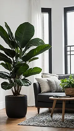 This giant green dude standing in the corner of the room looks like it’s practically moved in! Having a big room plant like this is like getting a super quiet roommate who only asks for sunlight and water, and never leaves dirty socks on the floor. It just stands there, looking cool and green, maybe silently judging your snack choices or your questionable music taste. But hey, at least it won’t steal your charger or argue over who gets the last slice of pizza.