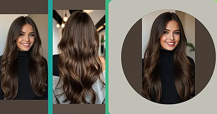 Wow, look at that hair! It’s not just brown; it’s that kind of rich brunette hair that looks like it belongs in a shampoo commercial, complete with dramatic wind effects. You can almost imagine it whispering secrets of amazing volume and shine. Those waves are practically red carpet ready, the kind that make you slightly jealous and immediately start googling “how to get hair like this?” It seriously looks like it has its own zip code and a team of tiny stylists working round the clock.