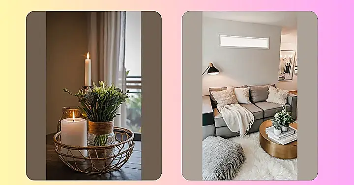 This picture is all about proving that you don’t need to be a millionaire to have a home that feels like a five-star hotel! Just look at this gorgeous setup – a simple, elegant candle, some beautiful but affordable flowers in a stylish vase, and a comfy couch in the background. It’s proof that a little bit of thought and creativity can transform your space into a relaxing oasis, without emptying your wallet. The soft lighting and pretty details create a luxurious feel, making your home a much happier and more inviting place to be.