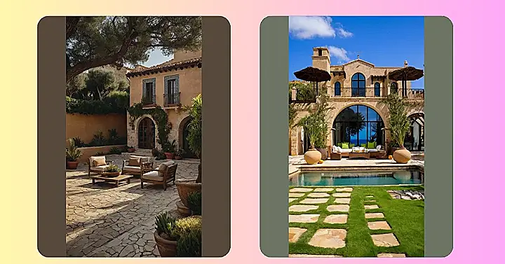 The warm Mediterranean sun streams through large windows, casting a golden glow on exposed wooden beams and whitewashed walls, bringing a sense of tranquility to these finely curated spaces. Intricate mosaic patterns adorn the courtyard floors, leading the way to tranquil garden alcoves where fragrant herbs and colorful blooms thrive. Imagine dining al fresco under a pergola draped in lush vines, the sound of cicadas in the background, and a glass of rich red wine in hand β these homes capture the essence of laid-back luxury with a touch of rustic refinement that is sure to inspire a deep appreciation for the natural beauty that surrounds them.