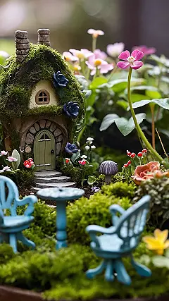 Now, let’s be real, maintaining this miniature paradise probably comes with some serious chores. Picture tiny fairies arguing over who has to weed the mushroom patch or sweep the moss off the porch (again!). But hey, even with a bit of hard work, who wouldn’t want to escape to a cozy cottage where the biggest problem is deciding which flower to plant next? This fairy garden is proof that small spaces can have huge personality!