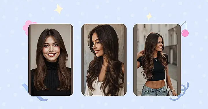 With hair this stunning, you’d think she’d be too busy brushing it to smile, but nope! That grin is so infectious, you almost expect her to spill the tea on some hilarious secret she just heard. Maybe her hair actually told her a joke! This ‘rich brown hair color’ isn’t just a shade; it’s like a warm hug for your face, adding extra sparkle to those bright eyes and making her whole vibe say, “Yep, I’m having a great day, and my hair is totally in on it.” It’s pretty clear this look is a total win-win for gorgeousness and good times.