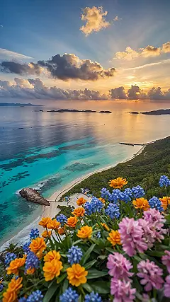 Wow, talk about a view that screams “Point your camera here… NOW!” Seriously, with water that turquoise and a sunset putting on a show like that, your phone’s photo storage is about to have a nervous breakdown. You try to fit everything in – the beach, the cool rock, the dock, maybe even sneak in those crazy colorful flowers up front. It’s vacation places photography level Expert, and you’re just trying not to get sand in the lens while capturing all this epicness because, let’s be honest, if you didn’t photograph it, did you even *really* see it?