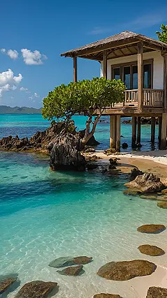 Just looking at this stunning photo makes you feel like you can almost hear the gentle waves and smell the salty air. You know how some pictures just grab you? This is one of them. The way that tree decided to just casually grow out of the rocks right next to the house? Total commitment to the aesthetic! Any aspiring photographer would have a field day here, trying to capture all those amazing blues and greens without getting their camera wet from accidentally falling into the tempting water. This whole scene is a perfect reminder that somewhere out there, a spot like this exists, just waiting for someone to relax on that porch and maybe try to snap a selfie with a passing dolphin (safely, of course!).