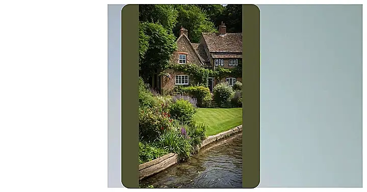 Look at this place! It looks like a hobbit might pop out any minute, or maybe a character from a Jane Austen novel trying to avoid getting their dress muddy by the river. Those old stone houses tucked into the hillside look so cozy, and the flowers are absolutely going wild, probably trying to outshine each other for the best spot in the picture. It’s exactly the kind of scene you picture when someone says “charming English countryside,” just bursting with green stuff and happy colors.