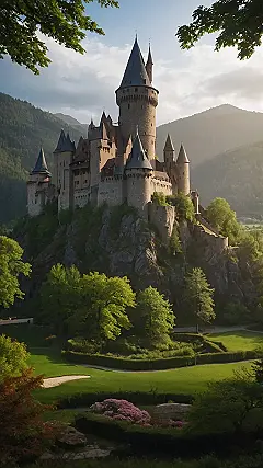 This castle looks straight out of a storybook! Just imagine: You’re a princess, maybe a little grumpy because you have to wear a dress all the time. But hey, it’s a sparkly dress, and you get to live in this amazing castle with its pointy towers and secret passageways. The only thing that would make this place more perfect is a friendly dragon to keep you company. You could probably find him sleeping under those lovely pink flowers, right?