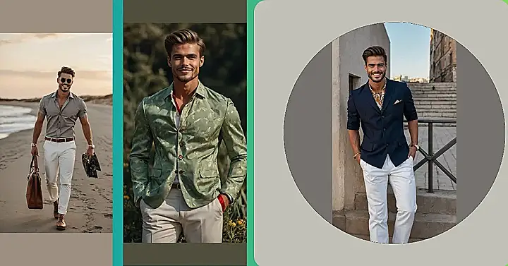Spotted: The ultimate guide to looking effortlessly cool without needing a fashion degree! This guy clearly knows a thing or two about rocking stylish men’s outfits, making it seem like he just woke up looking this good. From sleek navy shirts with bright white pants that scream “I’ve got it together” to the classic white tank and dark trousers combo that’s perfect for a sunny day, these looks prove you don’t need a crazy wardrobe to stand out. It’s like these clothes have a built-in “look awesome” button, saving you precious time you could be using for, you know, sleeping in.