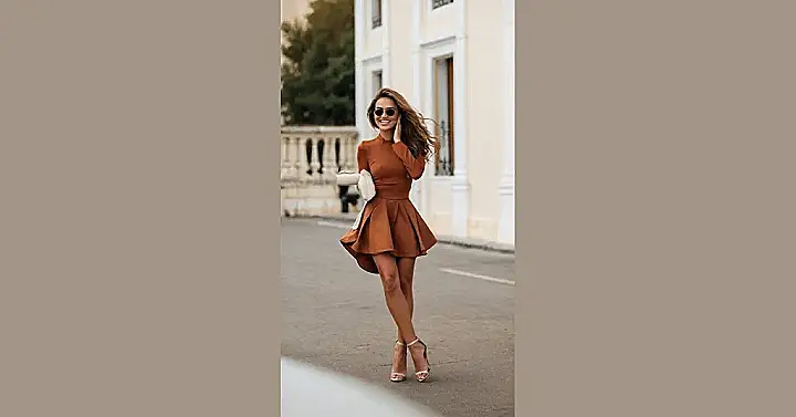 This lady is definitely rocking the “charming lady outfit” look! She’s got the whole “I woke up like this” thing going on, even with those killer heels. Her dress looks like it could be straight out of a magazine, and those sunglasses? They’re definitely adding to her cool-girl vibe.