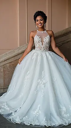 So, you’re on the hunt for the best wedding dress ever? Well, look no further, because this dress is totally giving us Cinderella vibes! Seriously, it’s got more layers than your best friend’s drama, and that tiara? It’s basically screaming “Queen for a Day!” Just imagine twirling in this thing at your wedding. You might need a whole dance floor just for the dress, but who cares? It’s worth it!