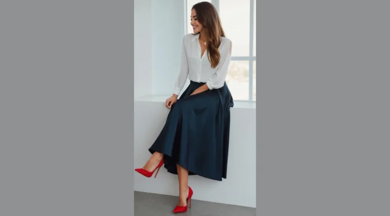Getting ready for a holiday party can sometimes feel like trying to solve a fashion puzzle: you want to look amazing but also be comfortable enough to actually enjoy the food and fun. Take a cue from this fantastic holiday party outfit! That flowy dark skirt and crisp white blouse create a super chic vibe that’s both elegant and easygoing. It’s the perfect combo for when you want to impress without looking like you tried *too* hard, giving off that effortless ‘Oh, this old thing?’ sparkle that still totally turns heads.