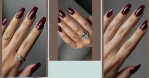 December is officially here, and these nails are screaming ‘holiday party ready’! That deep, rich burgundy color isn’t just pretty; it’s basically the sophisticated older cousin to all those cheerful red ornaments. With these long, coffin-shaped beauties, you’ll be looking totally glam, though we can’t promise you won’t accidentally poke your eye out trying to put on mascara or struggle a little bit with your phone’s keyboard. But hey, it’s a small price to pay for fingers that look this festive!