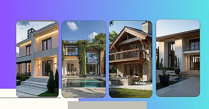 Let’s start with the exterior! You know those picturesque houses with climbing roses and a hint of rustic warmth? We’ll explore designs that make you want to keep your windows wide open to let the sun shine in (and maybe a few curious village cats). From stone façades that whisper tales of history to modern entrances that wave hello from the future, these ideas are all about marrying tradition with contemporary flair.