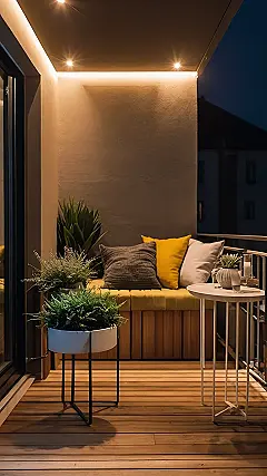 Seriously, who needs a huge patio when you can have this? This design is all about maximizing space and creating a stylish and inviting feel. Those clever little shelves are brilliant for showcasing your favorite plants without taking up too much room, and the warm lighting makes the whole thing feel extra cozy. This is the perfect spot to enjoy a quiet evening, stargaze, or simply relax and unwind – it’s basically a mini-spa for your soul, but way cooler.