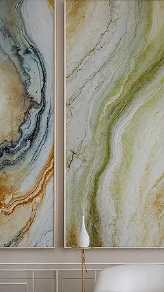 Who knew art could be like a secret handshake for your brain? These amazing panels on the wall are totally giving off ‘dopamine decor’ vibes, making your room feel like a cozy, cool escape. It’s like someone took all the good feelings from seeing a perfect sunset or finally finding that missing sock and swirled them onto a canvas. The way those colors blend, from calm blues and earthy browns to fresh greens and sunny yellows, they’re practically doing a happy dance for your eyes. Forget boring walls; these masterpieces are here to make sure your space is always serving up those good mood chemicals!