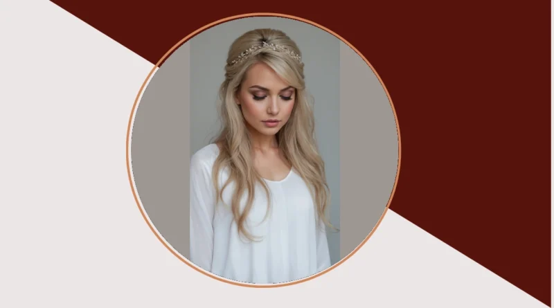 Plus, let’s talk about that bling! The delicate, leafy headband woven into the pulled-back part of her hair in the picture? Total game-changer! It’s like adding a little bit of fairy dust without going full-on tiara (unless that’s your vibe, no judgment!). This style makes you feel fancy enough to walk down an aisle, but still chill enough to not feel like your head is wearing a wig. It’s the perfect combo for looking like a total stunner without all the drama, making sure you look perfectly polished and ready for your close-up (or just for eating cake without hair getting in the way).