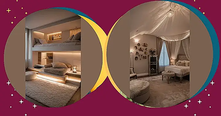 Looking at this room, you might wonder if you accidentally clicked on a fancy hotel brochure instead of a room makeover blog! This isn’t just a place to crash; it’s practically a royal suite, complete with those amazing sparkly lights that make the ceiling look like a shimmering water scene. Forget your old posters and mismatched socks; this is where you come to feel like you’re starring in your own luxury commercial. Just imagine trying to sneak a late-night snack in here without leaving a single crumb – mission impossible, but totally worth it for this vibe!