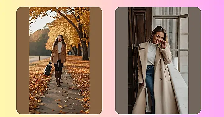 This outfit is like a warm hug on a chilly day! A cozy camel coat is a total must-have for fall, and this one is perfect for rocking any occasion, from school to hanging with friends. It’s like a blank canvas you can totally dress up or down – pair it with jeans, a cute top, and your fave shoes, and boom! You’re ready to slay the autumn season.
