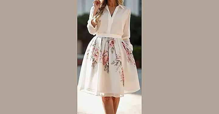 Check out this outfit! The skirt with the flowers is awesome, but let’s talk about that white blouse. It looks so crisp and fancy, like you could totally ace a presentation or just casually walk down the street looking like you own the place. We all know keeping a white shirt *this* white is basically a superpower, right? It makes you wonder if they make these things stain-proof for real life, or if this person just lives in a bubble. Either way, it proves a simple, beautiful blouse can make a whole look pop and make you feel like a million bucks.