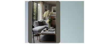 The centerpiece of the image is this gorgeous tray with a big red gift box, wrapped in green ribbon, that’s just calling for someone to open it. There’s even a smaller decorative tree in a pot, which makes the whole thing feel like a little Christmas village. It’s the kind of room that makes you feel warm and fuzzy inside, even if it’s cold outside.