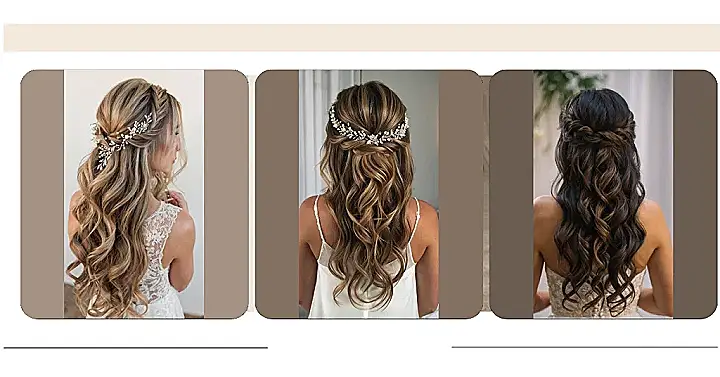 From voluminous curls to sleek straight strands, the versatility of modern half up half down bridal styles knows no bounds. Each intricate twist and curl adds a touch of glamour and allure, enhancing the bride’s natural beauty and creating a captivating silhouette. With the right accessories and embellishments, these styles can be personalized to reflect each bride’s unique style, whether it’s a minimalist approach with a sleek barrette or a more opulent touch with floral accents. The modern bride can confidently walk down the aisle, knowing that her hair exudes elegance and sophistication from every angle.