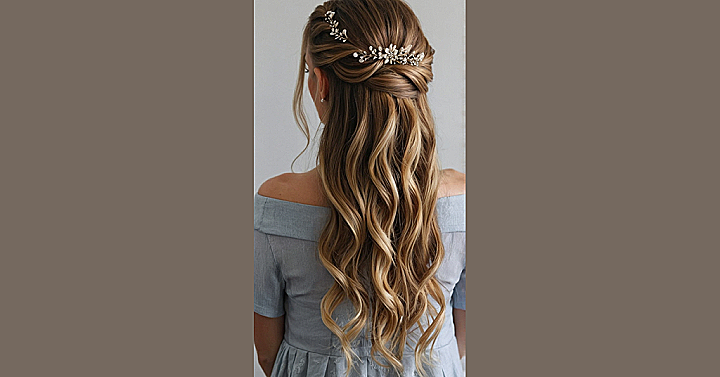 When it comes to prom night, your hairstyle can make a huge statement. If you’re aiming for a look that effortlessly balances elegance and modern charm, the half-up half-down hairstyle might be just what you need. Imagine gracefully cascading waves framing your face, with the top section delicately secured, creating a perfect blend of sophistication and playfulness. This style embraces the best of both worlds, offering a nod to tradition while embracing contemporary trends.