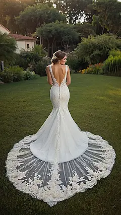 Now, let’s talk about the potential hazards of this gown. First off, you might need a small army to help you get into it (hello, bridal squad!). Also, expect to spend the entire reception saying, “No, you’re not stepping on my dress!” But hey, who cares? You’ll look like royalty, and that’s all that really matters, right? Plus, think of all the Instagram-worthy photos you’ll get!