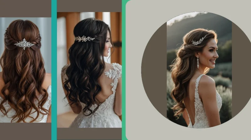 This hairstyle is perfect for a winter wedding! It’s elegant and romantic, with loose curls that flow down the back. The sparkly hair clip adds a touch of glamour, and the style is easy to wear, so you can dance the night away without worrying about your hair. It’s like a winter wonderland for your hair – pretty, effortless, and totally ready for the big day.