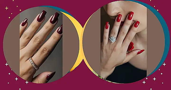 These nails are like a whisper in the wind – subtle, sophisticated, and oh-so-pretty! The deep red color reminds us of falling leaves and cozy evenings by the fireplace. Plus, that sparkly ring just adds a touch of extra magic. Imagine getting compliments on these nails at school, like, “OMG, your nails are so cute!”