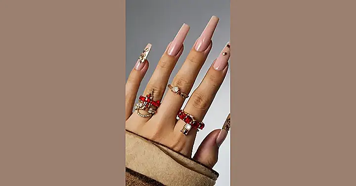 And let’s not forget that gorgeous ring! It’s like a sparkling centerpiece, adding even more bling to these already fabulous nails. With this combo, you’ll be the belle of the ball, and everyone will be asking you, “Where did you get those awesome nails?”