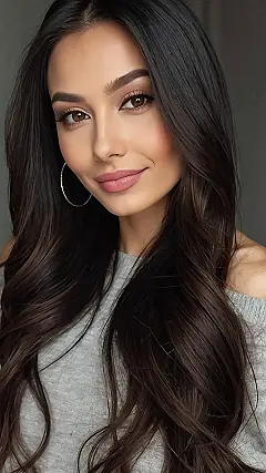 This hair is so dark, it’s practically a black hole for light! Imagine trying to find a lost sock in there—good luck with that! But seriously, that deep, dark winter hair color is seriously gorgeous. Those waves are like something out of a fairytale, or maybe a really awesome shampoo commercial. It’s the kind of hair you’d want to run your fingers through (if you asked nicely first, of course!).