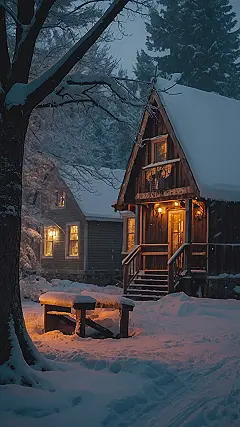 **Title:** Cozy Cabin Winter Wonderland