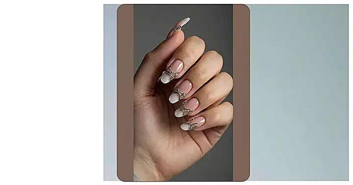 Whoa, check out these nails! Forget boring, these beauties are straight out of a snow queen’s dream, totally ready for winter 2025. With those crisp white tips looking like fresh powder and the shiny gold decorations twinkling like tiny ice crystals, you’ll basically have a winter wonderland right on your fingertips. And those little blue gems? They’re like miniature frozen lakes just waiting to sparkle under the holiday lights. These aren’t just nails; they’re a whole winter mood, designed to make you feel super glamorous even if it’s freezing outside.