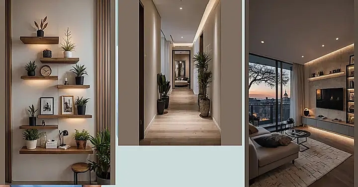 Tired of your apartment hallway looking like a forgotten tunnel to nowhere? This picture shows us how to turn that ‘meh’ space into a ‘wow!’ It’s like this hallway got a total glow-up and decided to become the most stylish spot in the whole apartment. Who knew a few strategically placed plants could make you feel like you’re walking through a mini jungle instead of just heading to the kitchen? And those cool round mirrors? They’re not just for checking your hair; they bounce light around, making the whole place feel huge, even if your apartment is technically the size of a really fancy shoebox.