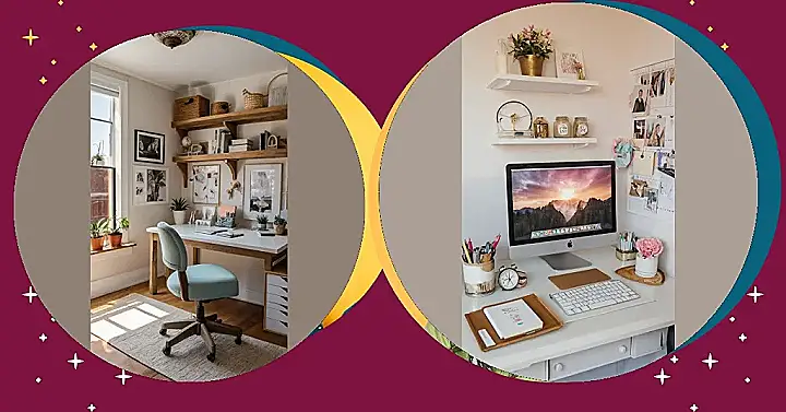 Between the gorgeous flowers (real or not, who knows?!), the fancy gold accents, and that dreamy desktop background, this space screams productivity. It’s the perfect example of how even a small space can become a stylish and efficient study area. Just imagine the Instagram likes you’d get – but more importantly, imagine the amazing work you could accomplish in such a happy, organized environment!