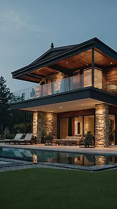 This villa looks like the perfect place to chill out and relax! The sleek modern design with the huge windows makes it feel like you’re living in a giant, luxurious treehouse. I bet the view from that balcony is amazing, and the pool is just begging for a cannonball (or at least a gentle dip!). This place is definitely giving me major “summer vacation” vibes, and I’m already daydreaming about sipping lemonade in the shade of that huge tree!
