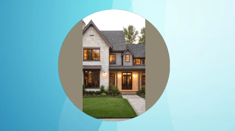 Stepping up to this magnificent house, you might wonder if a farmhouse hit the jackpot and hired a celebrity stylist. It’s got all the classic, cozy vibes of a rustic retreat with those cool stone walls, but then it throws in giant windows and a stately front door that practically screams, ‘Welcome! We probably have cookies!’ This isn’t just a place to store your tractors; it’s where you’d host the most epic board game nights, probably with actual boards made of solid oak.