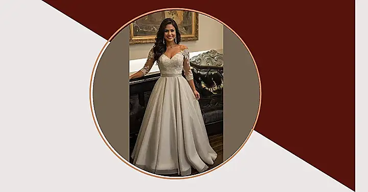 This dress is seriously stunning! Imagine yourself as a bridesmaid in this gorgeous, champagne-colored gown. It’s like something straight out of a fairytale – all swishy satin and delicate lace sleeves. You’d feel like a total princess, even if the only royal event you’re attending is your best friend’s wedding. Plus, you’ll be the most stylish bridesmaid, hands down! Forget about fighting over who gets to wear which dress; everyone will want this one.